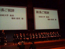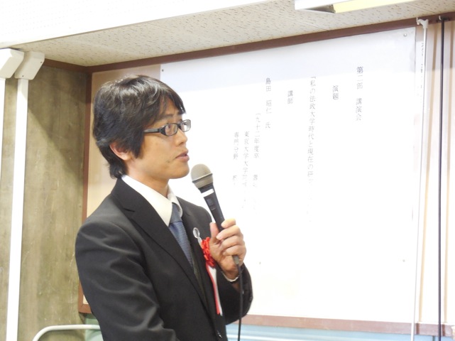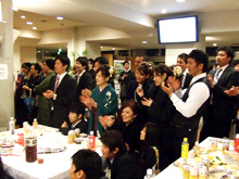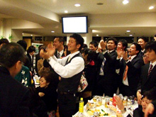 卒業生との和やかな歓談の後に、応援団による演舞があり、恒例の全員で肩を組んでの校歌斉唱、最後に川島健司教授の閉会挨拶により終宴となりました。