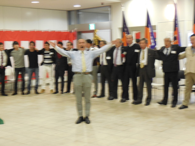 続きましては、恒例の応援団リ—ダー部及びチアリーディング部によるパフォーマンス、そして応援団のリードのもと参加者全員が校歌を高らかに斉唱し、祝賀会を終えました。