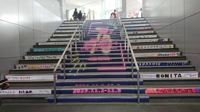 キャンパス内は、快晴かつ暖かく、キャンパス中央広場の屋台を見ながら、外濠校舎2階に移動し、毎年忘年会でお世話になっている落語研究会にて珠玉の笑いを楽しみました(今年も同窓会では、忘年会と落語企画やります)。同校舎1階のメデイアラウンジではアカデミー合唱団による素敵なコーラスを聞くこともできました。スタンプラリーにも参加しつつ(4箇所のスタンプを集めエナジードリンクを2本もゲット)、正門前のステージ企画、大内山校舎6階へエスカレータにて移動しニューオレンヂスウィングオーケストラの学祭ライブ、毎年お邪魔している富士見坂校舎3階ラウンジで開催のピアノカフェ(300円でお菓子とお茶つき)、今回「光」をテーマにした写真研究会の作品を見たりと、本当に楽しい1日を過ごすことができました。大学祭をサポートしている大学教職員の皆さん、(大量のゴミが法政祭では排出されるのですが)ゴミ分別をサポートしているキャンパスエコロジーの学生の皆さん、そして法政祭の主軸となっている実行委員会の皆さんとも話ができ、あっという間の解散予定時刻(16時)となりました。