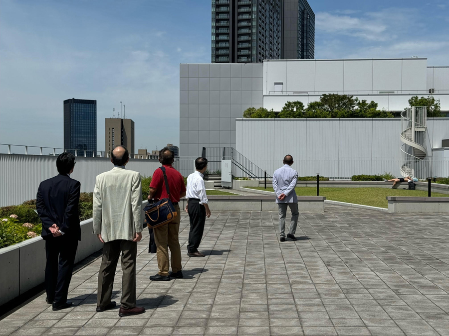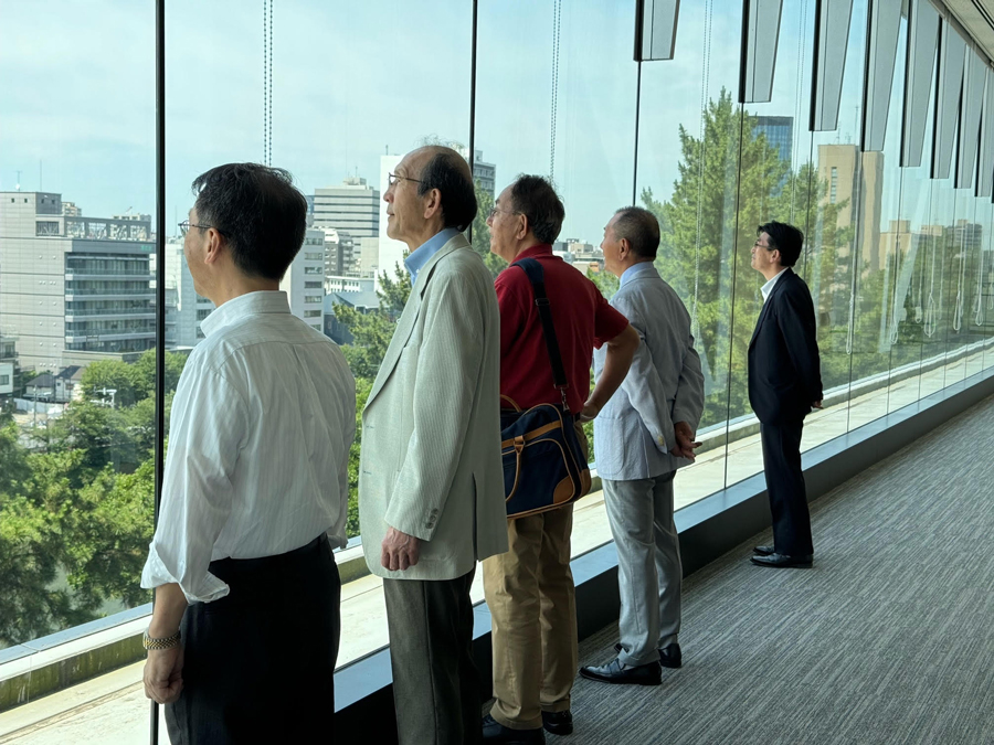 定期総会開催前には、昨年に引き続きキャンパス見学会を開催しました。今年は富士見ゲートを中心に見学しました。桜の時期ではありませんが、新緑の映える外濠を見ることができ、最後には屋上庭園を見学し、授業の合間に息抜きのできる場所の重要性を認識しました。