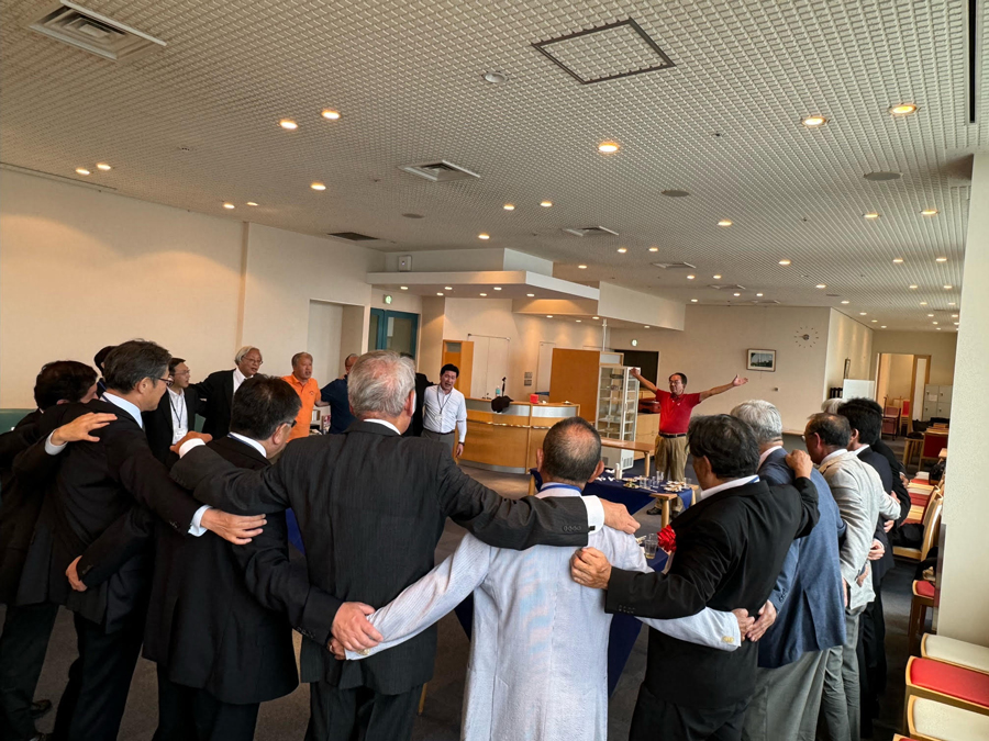 引き続きの懇親会では、参加者一人ずつそれぞれの学生時代の思い出や近況などをお話しされ、最後に参加者一同が肩を組み、校歌斉唱をして盛会のうちに閉会となりました。