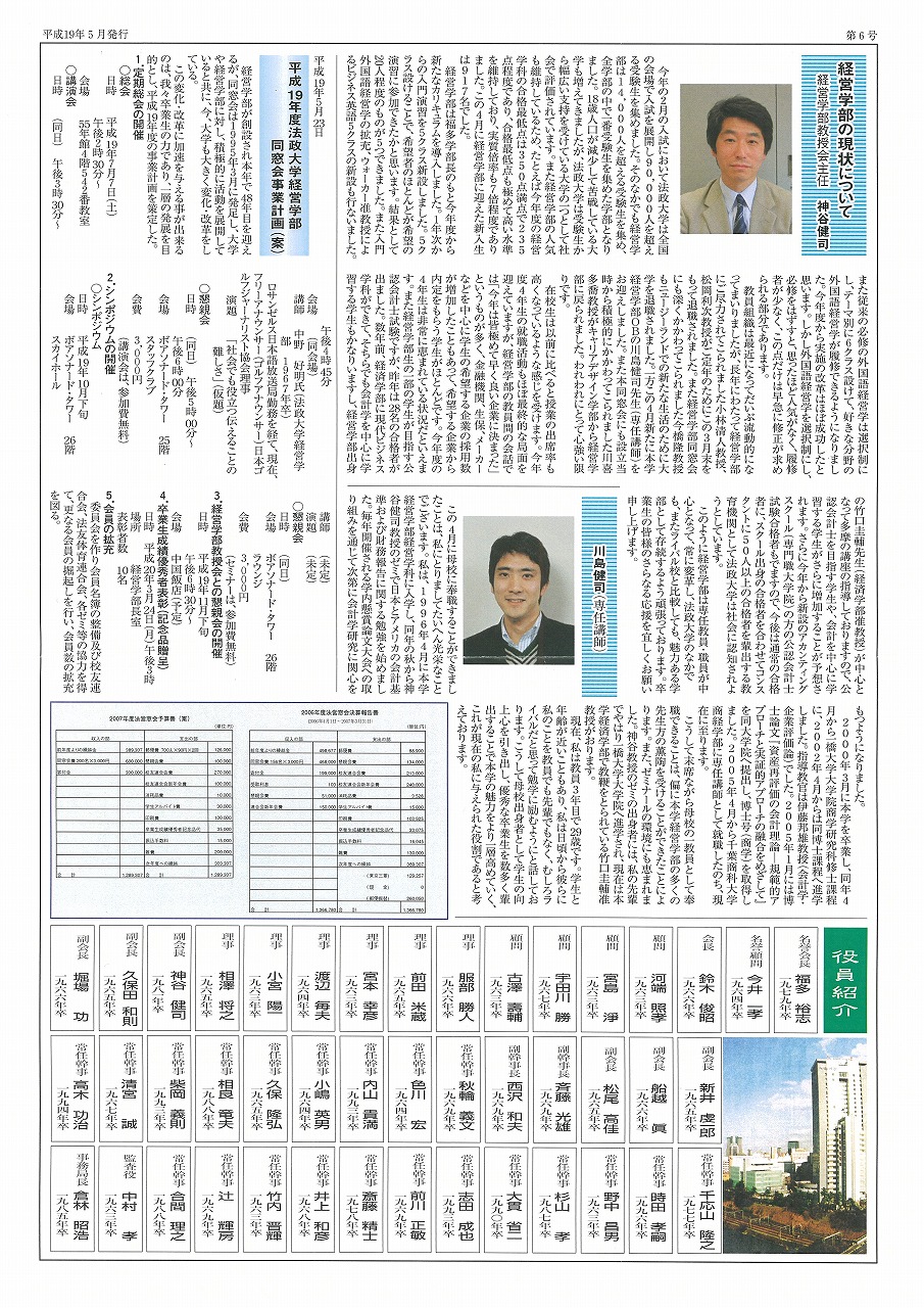 - 2007年5月発行経営学部同窓会通信、表詳細はこちら