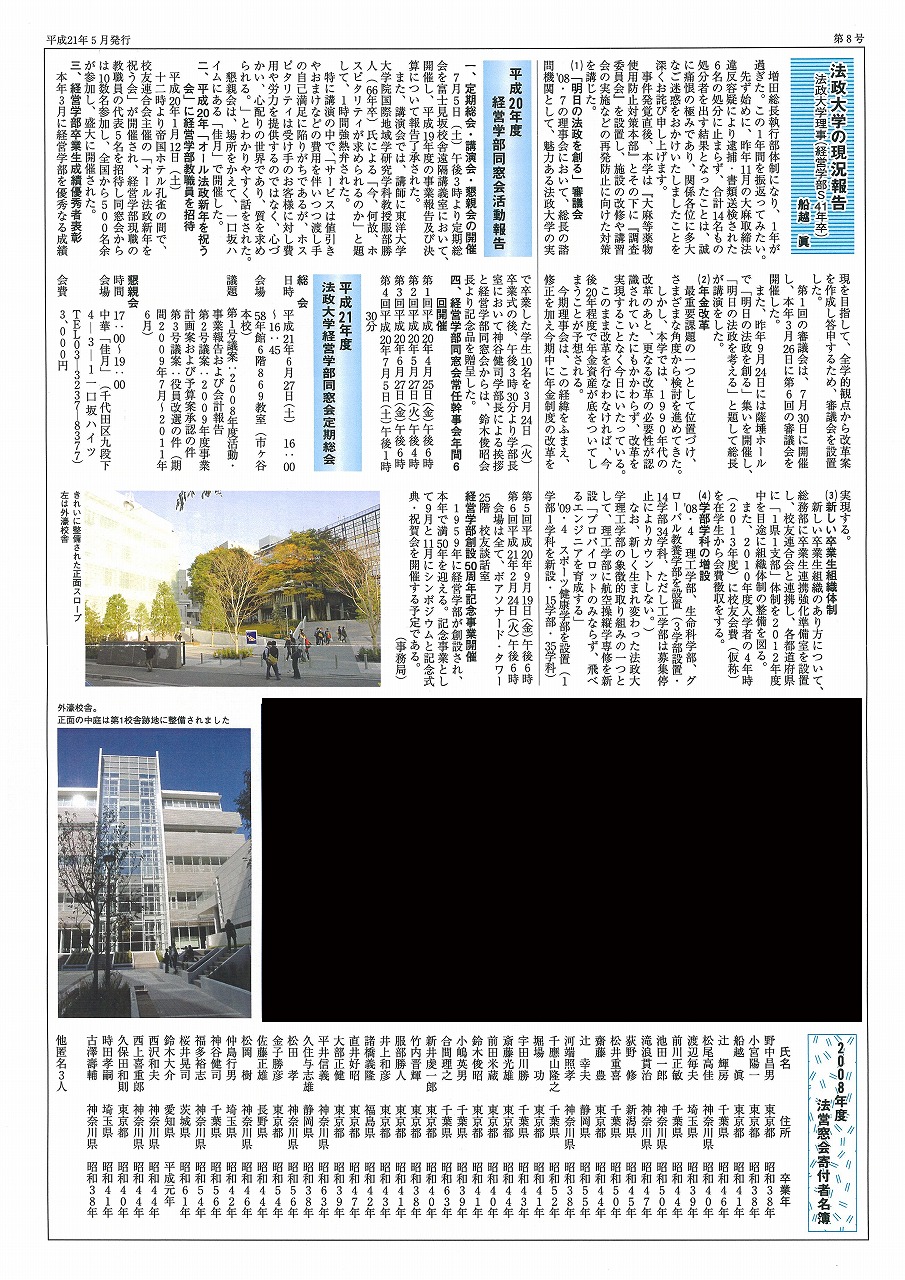 - 2008年5月発行経営学部同窓会通信、裏詳細はこちら